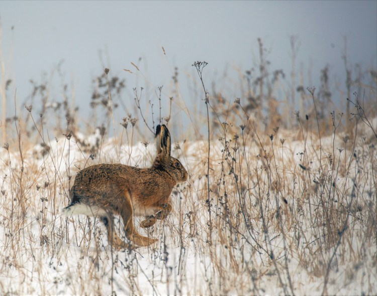 The weather forecasters described it as the “mini beast from the east” but under all that snow and water, minibeasts were in short supply. I did find a Giant House Spider to add my list (and true to my word didn’t enquiry any further as to its personal details in order to determine its exact species) but other than that all I could add to my list in that first, frozen half of the month was another six plants, two birds and a mammal in the form of Brown Hares; four of them to be precise, stotting their way across the snow.