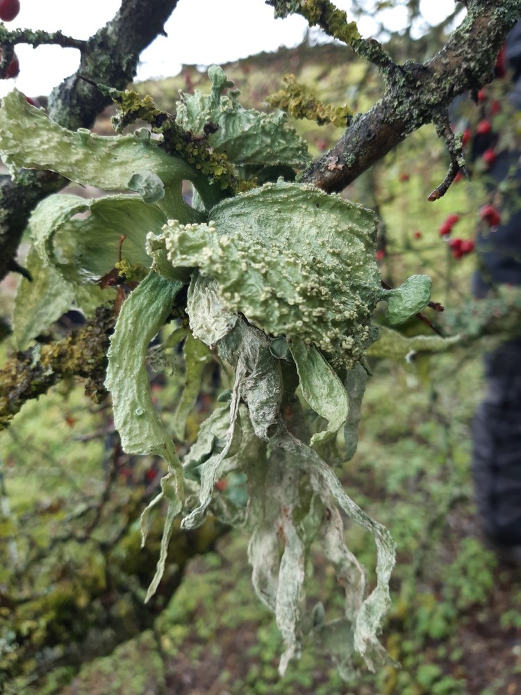 The best was saved for last though and on my birthday at the end of the month I did my first field trip with Durham Wildlife Trust botany group. This was to a hamlet called Dirt Pot, which is no more than a tiny stain on the map, close to where the three counties of Durham, Northumberland and Cumbria meet. The combination of clean air and conversely historic contamination from lead mining has resulted in a hotspot for rare or unusual plants and lichens. I saw several plants that I had only seen once or twice before, a few mosses that were completely new to me, including one that looked like a miniature palm tree and several lichens that were unlike anything I’d seen before. The one which most enthralled the leader, who was very well versed in lichens but had never seen one of these before, was the size and appearance of a “Lolo Rossa”, cut and come again, lettuce. I am taking her word for it that it was, in fact, a lichen and not a lettuce. The oddest looking, and therefore my species of the month, clung to a Hawthorn as if someone had thrown a plastic bag into the tree, which had then partially disintegrated over several years. It goes by the name of Ramalina fraxinia, but I have christened it the Dog Bag Lichen.