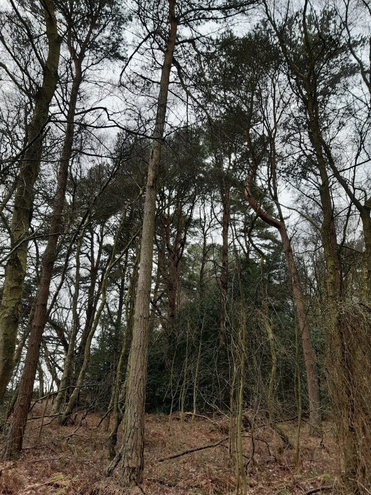 The group filters into a thin strip of conifers, the squirrel’s last stand in more ways than one. Mainly silent, almost reverential, they crane upwards for an epiphany in red. Flitting round the group I point out the fork on the tree where an old drey sits; “third tree back, where the land drops away; the thin tree with the snag half way up”. We wait, a straggled séance, willing movement, flinching at twigs in the wind, watching everything but time. A flash of movement in the undergrowth as a rabbit dashes for its burrow, startling those nearest to it and the hypnosis is broken. We drift back out, some disappointed, some animated at encountering any wildlife so close.