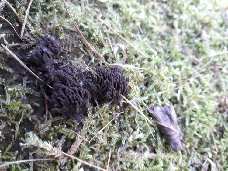 My species of the month was a bizarre life form which resembled a platoon of chocolate caterpillars doing a Mexican wave (the collective noun for caterpillars is an army but this was a smaller version). The resemblance was even closer when we blew on them and they vibrated in synchrony and released a cloud of chocolate dust. Of course, if it was a bizarre life form then you can bet it was a slime mould, which it proved to be and not only are slime moulds the weirdest form of life, they also have the best names. This one is called “Chocolate Tubes”; not quite as good a name as the Wolf’s Milk slime mould encountered in my May blog, but a lot more Christmassy.